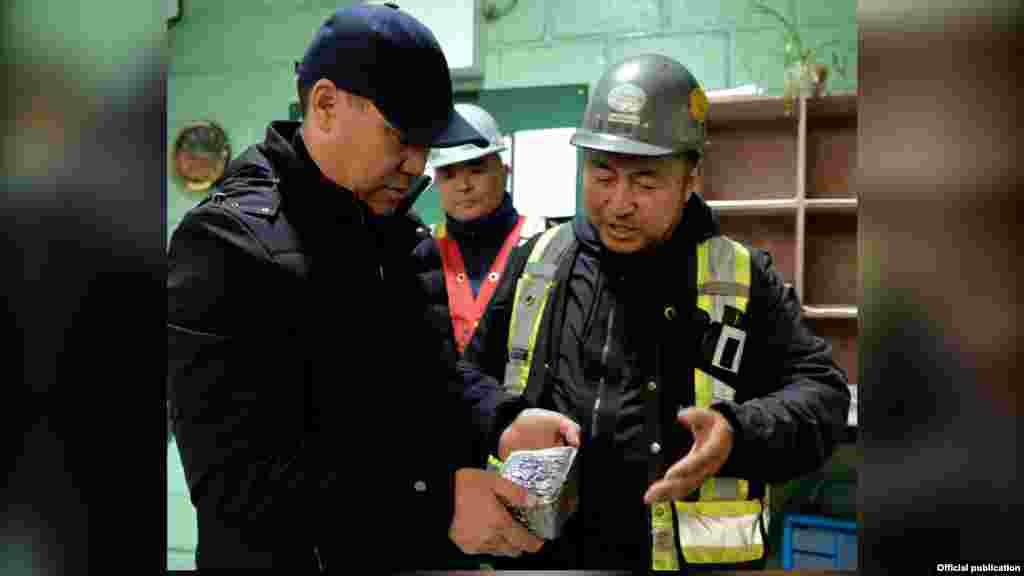 Садыр Жапаров Кумтөргө барып, карьердеги жана алтын ылгоочу фабрикадагы иштер менен таанышты.