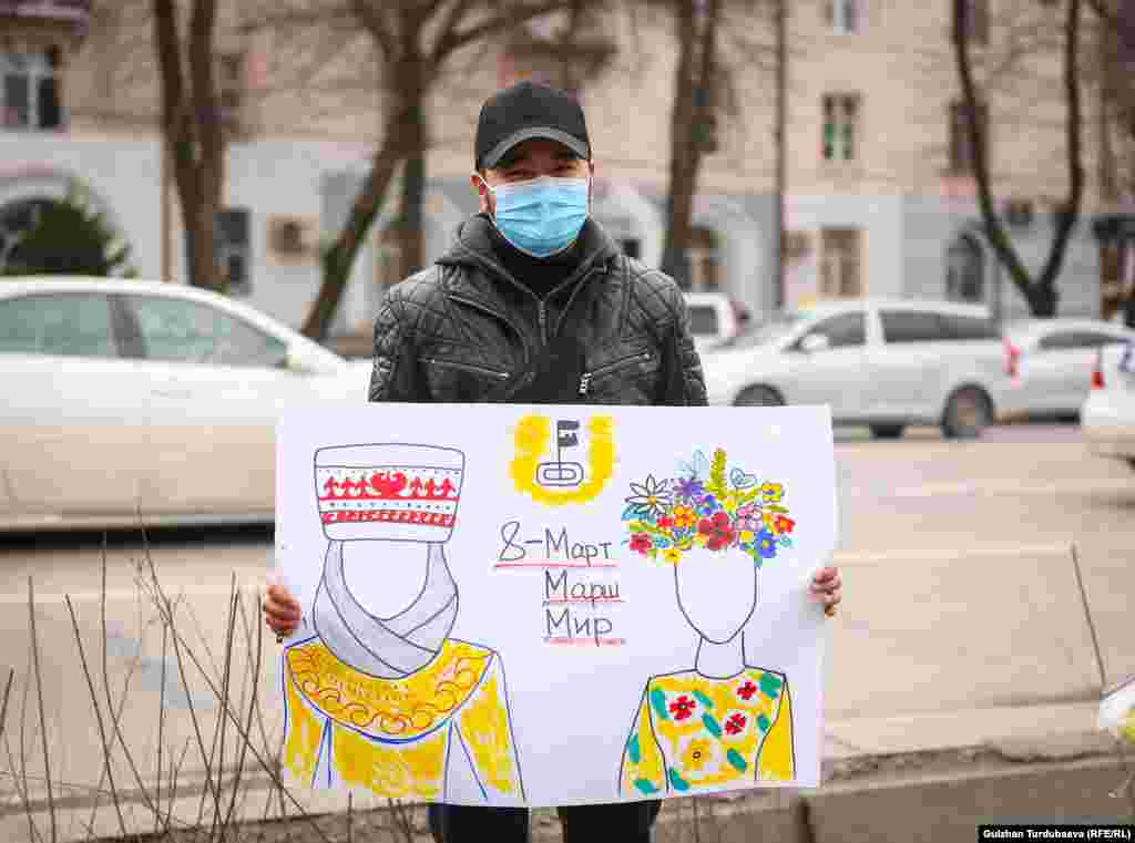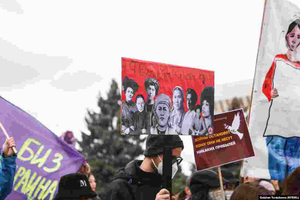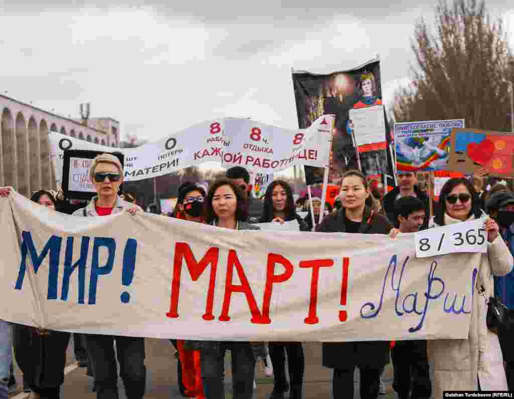 Иш-чаранын уюштуруучулары бул жылы марштын темасы катары бүткүл дүйнө аялдарынын согушка каршы тилектештиги тандалганын билдиришти.