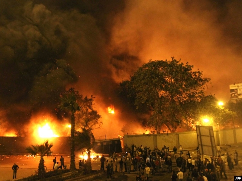 Чет элдик кабарчылар ишембиге караган түнү Египетте бир топ дүкөн, банк жана башка мекемелер каракталып өрттөлүп, калк ушу тапта кырдаал дагы кандай болуп кетет деп чочулап турганын маалымдашат.