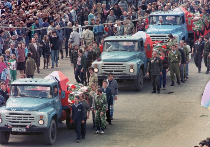 Анан союздук армиянын командачылыгы бизге чыга баштады. Бизге келип “айтып бергиле, силердин кайрылууңарды уктук” дешти. Биз "эч качан демократиялык баалуулуктан баш тартпайбыз, керек болсо жаныбызды да берүүгө даярбыз. Ошондуктан бүт мекендештерди, бүткүл союздук армиянын аскерлерин бул провокацияга алданбагыла, бул келечеги жок бийлик, төңкөрүш" деп чакырык жасаганбыз. Текстин мен өзүм иштеп чыккам. Анан солдаттардын командирлери келип, тексти өздөрү алып кетишти.